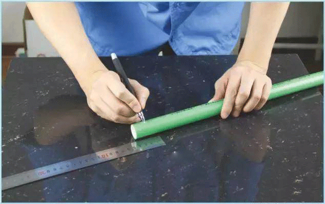 Mark the welding depth on the PPR pipe with a marking pen.